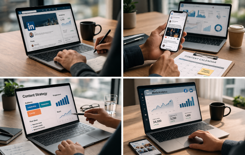 Strategy-led content creation and social media management for leaders and organizations—designed to build clarity, credibility, and consistency across LinkedIn, with Facebook support as needed.